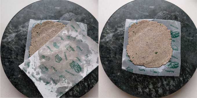 - Make sure to grease your hands, rolling pin, and plastic sheets nicely before rolling the puri.