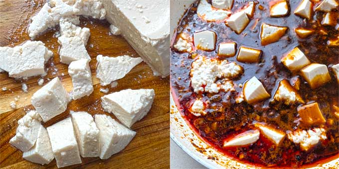 - After adding silken tofu, do not cook the sauce for too long or stir it rigorously. Slow simmer of 5 minutes is good enough.
