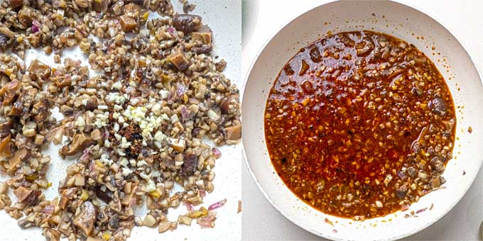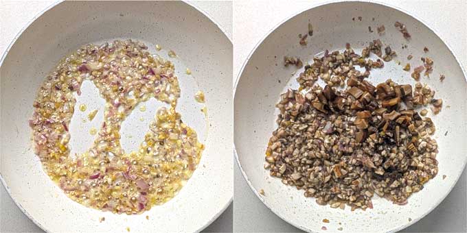 - Add the finely chopped mushrooms and cook, stirring occasionally, until they release their moisture and start to brown, about 5 -7 minutes. This is crucial for developing their meaty texture and deep flavour.