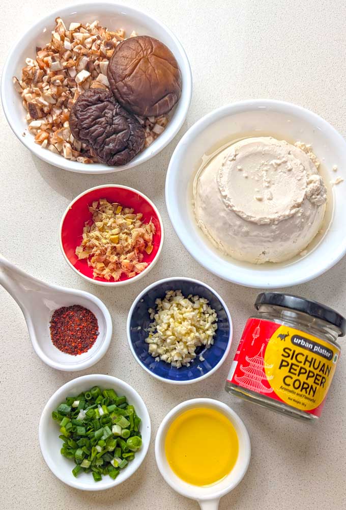 - Mushrooms are the subsitute of ground meat in this mapo tofu recipe. I use a mix of cremini and dehydrated Shiitake mushrooms.