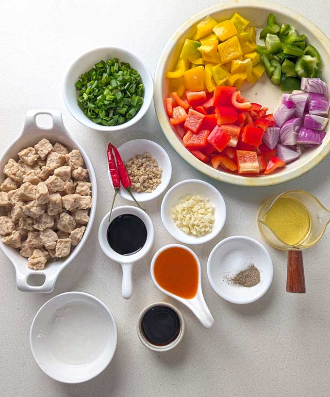 Bell Peppers – red and yellow, cut into cubes.